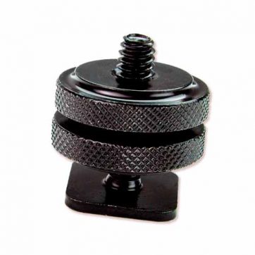 The Rock Solid Hot Shoe to 1/4″-20 Male Post Adapter has a threaded 1/4″-20 stud on the top and a cold flash shoe on the bottom.